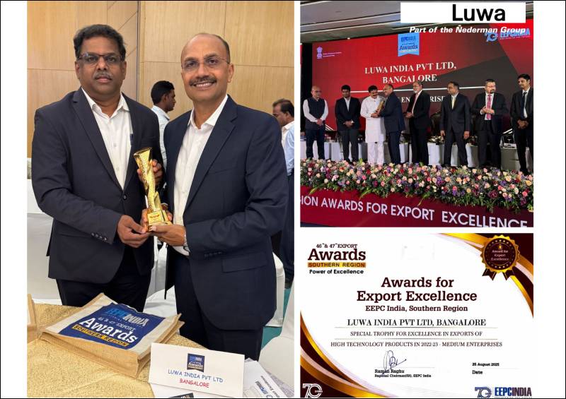 The award recognises Luwa India’s role in advancing global textile technology through high-quality engineering, sustainable manufacturing and innovative air engineering solutions. From its base in Bangalore, the company has expanded its reach to international markets, strengthening India’s position as a leader in advanced textile technology exports.