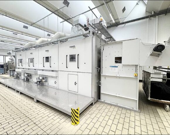 Also on display is a homogenizer recycling line, where bottle flakes and film waste can be agglomerated, extruded, homogenised and melted to produce polymer melt or chips.
