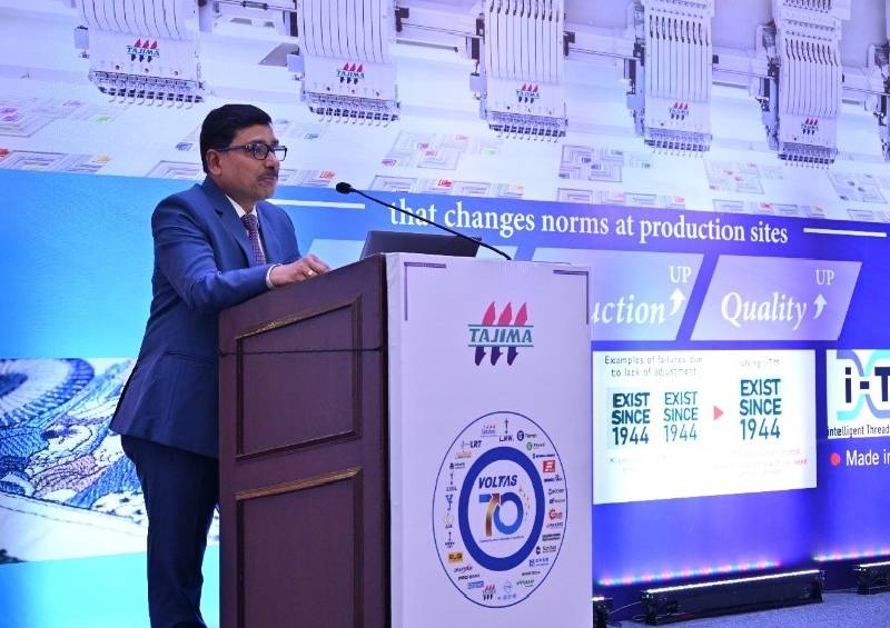 The session opened with a welcome address by Pradip Roy, Head – Textile Machinery Division, UMPESL, followed by a keynote from Pradeep Bakshi, former MD & CEO of Voltas Ltd. Karmaveer Singh Rathore, Head – Regional Operations and Tajima Product Head, traced the journey of UMPESL’s Textile Machinery Division, while Nobumasa Asai, Department Head, Tajima Japan and Hiroki Washimi, Sales Department, Tajima Japan, shared insights into Tajima’s legacy and its latest embroidery technologies. Nizar Ali, Head – Post Spinning Division, introduced the Tajima team and outlined future business strategies for India.