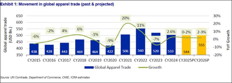ICRA revised its outlook on the Indian apparel export sector to Stable from Negative in February 2026, supported by easing tariff pressures and expected gains from potential free trade agreements (FTAs) with the EU and the UK.